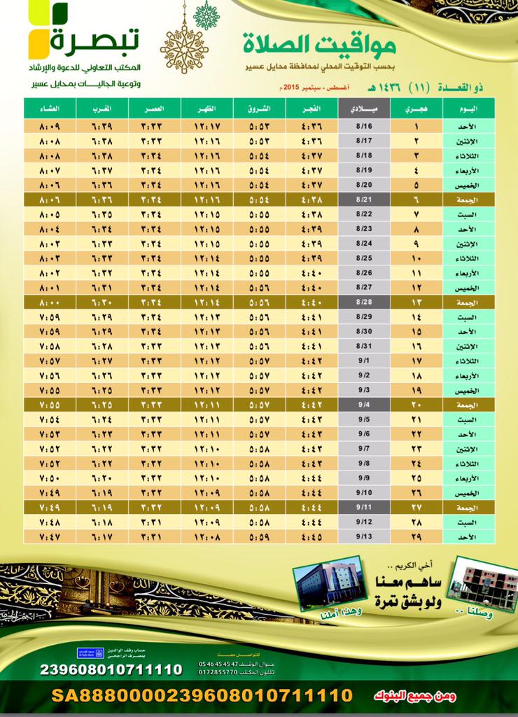 جمعية الدعوة والإرشاد بـ محايل En Twitter مواقيت الصلاة بمحايل عسير تبصرة